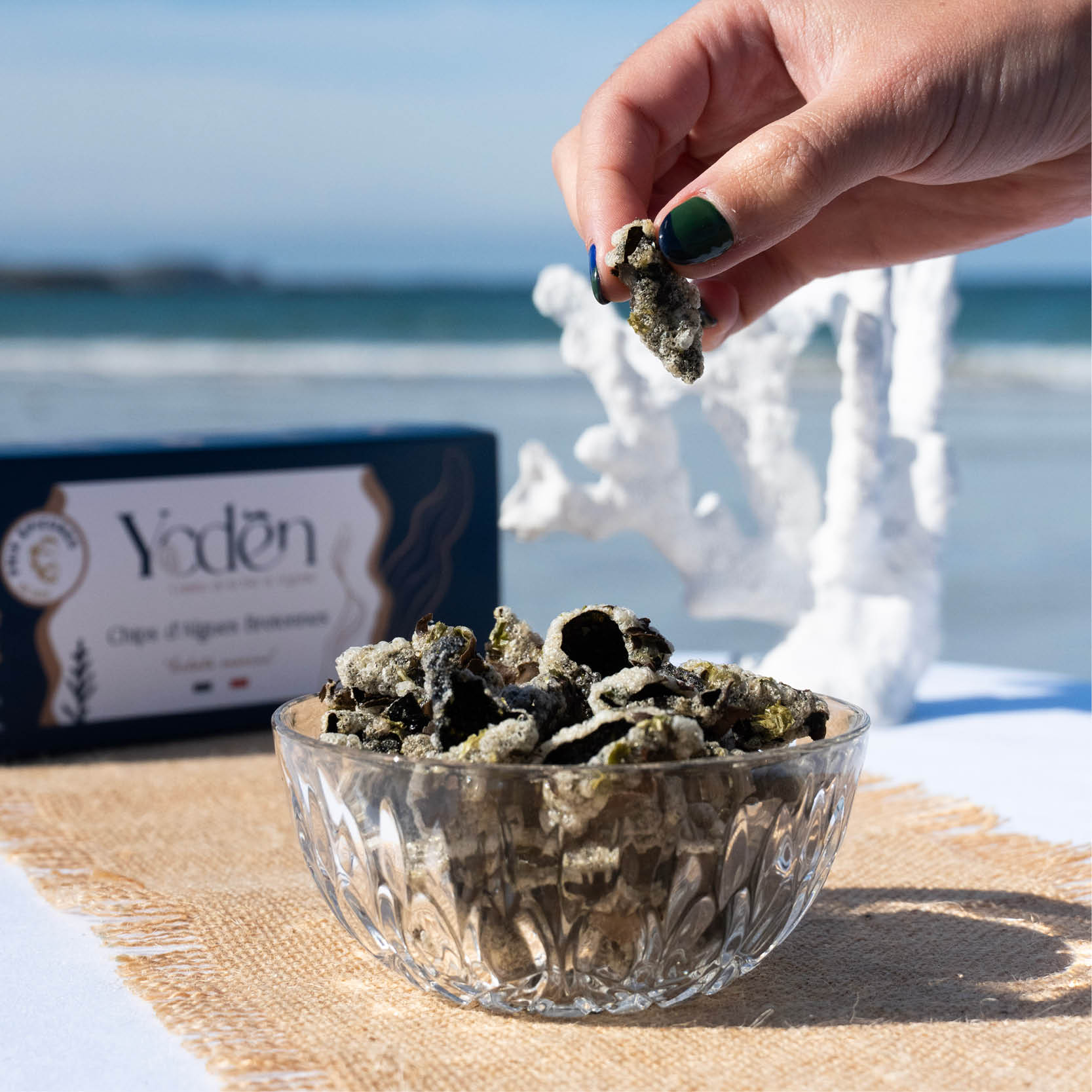 Une chips d’algues bretonnes est une alternative aux chips traditionnelles, élaborée à partir d’algues alimentaires récoltées en Bretagne. Chez Yodēn, nos chips sont fabriquées artisanalement à partir d’un assemblage de laitue de mer, de dulse et de nori, afin d’offrir une texture légère et un goût subtilement iodé.
